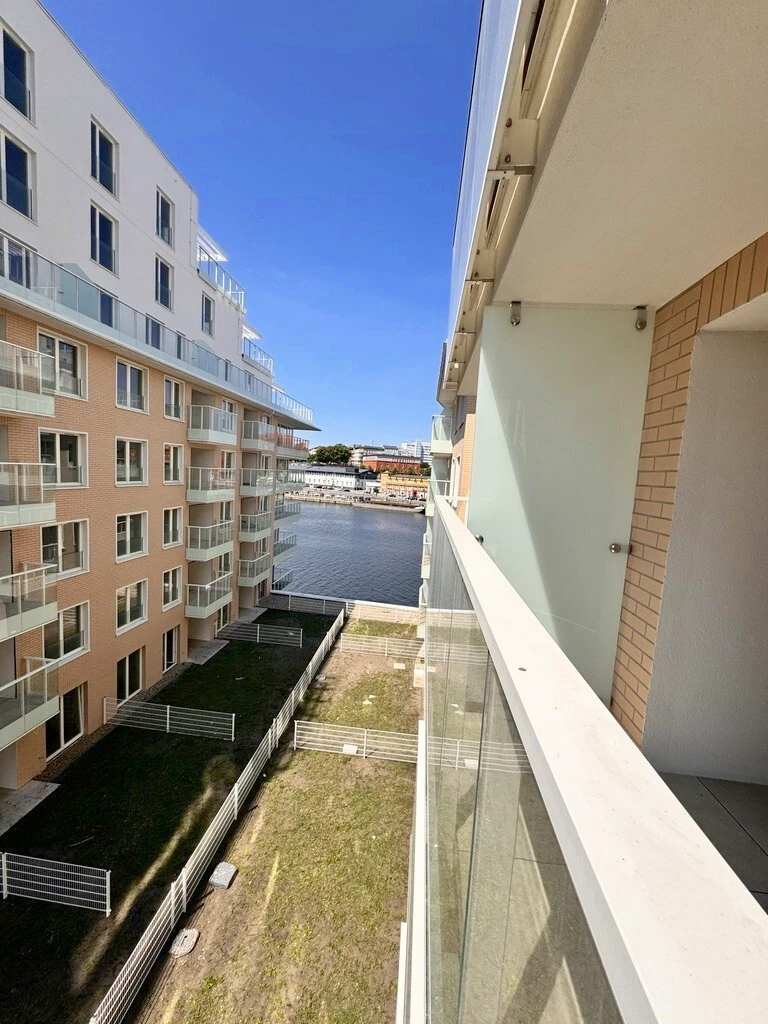 Willkommen in Ihrem neuen Zuhause an der Oder! Dieses moderne Apartment befindet sich im exklusiven Wohnkomplex Nowa Przystań, direkt am Flussufer – wo maritimes Flair auf moderne Architektur trifft.