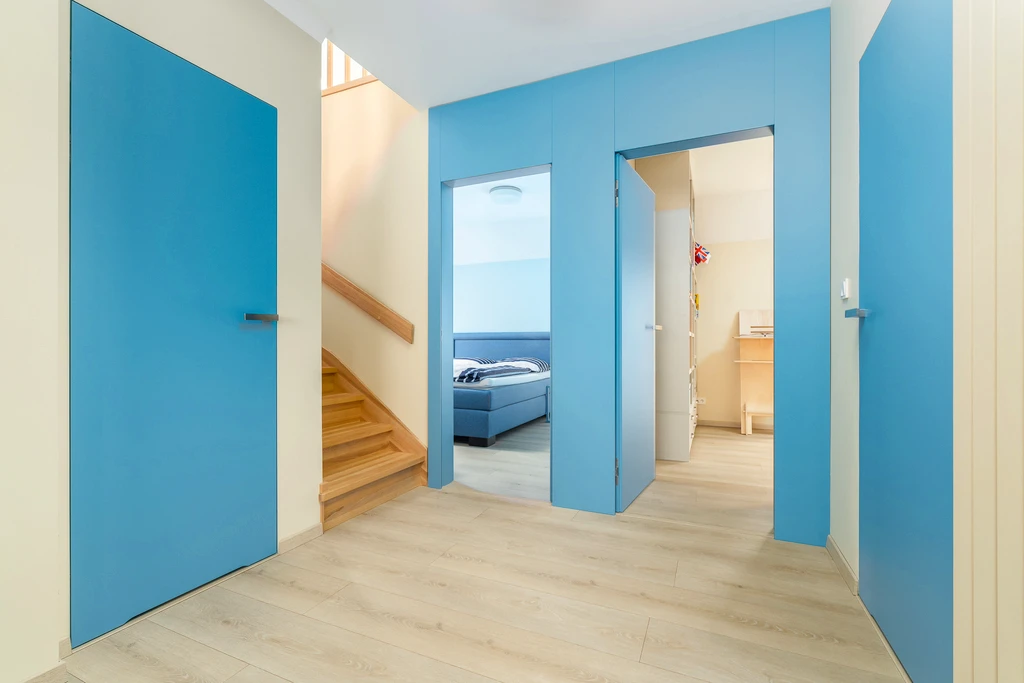 - Zusätzlicher Stauraum: Unter der Treppe sowie im Flur befinden sich geschickt integrierte Einbauschränke