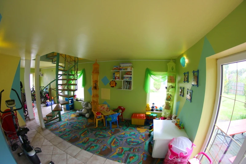 Erstes Nebengebäude (zweigeschossig): - Zwei Dreibettzimmer mit eigenem Bad - Gemeinschaftsraum - Sauna - WC - Spielbereich für Kinder - Zugang zur Terrasse mit Grillplatz