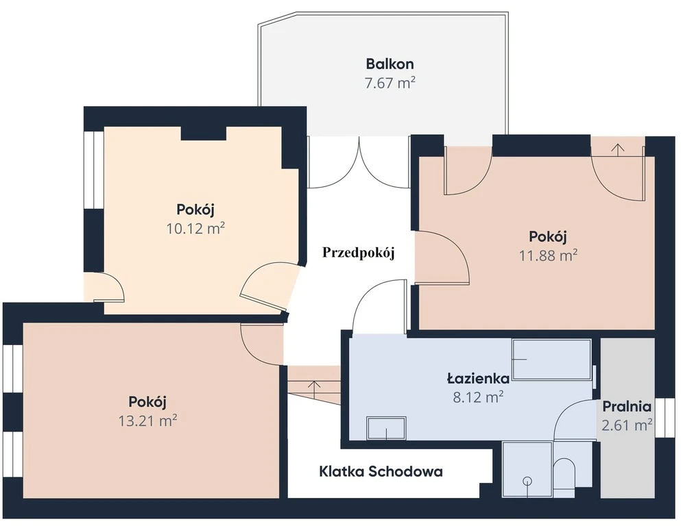 Zimmergrößen: 13,21 m² + 11,88 m² + 10,12 m²