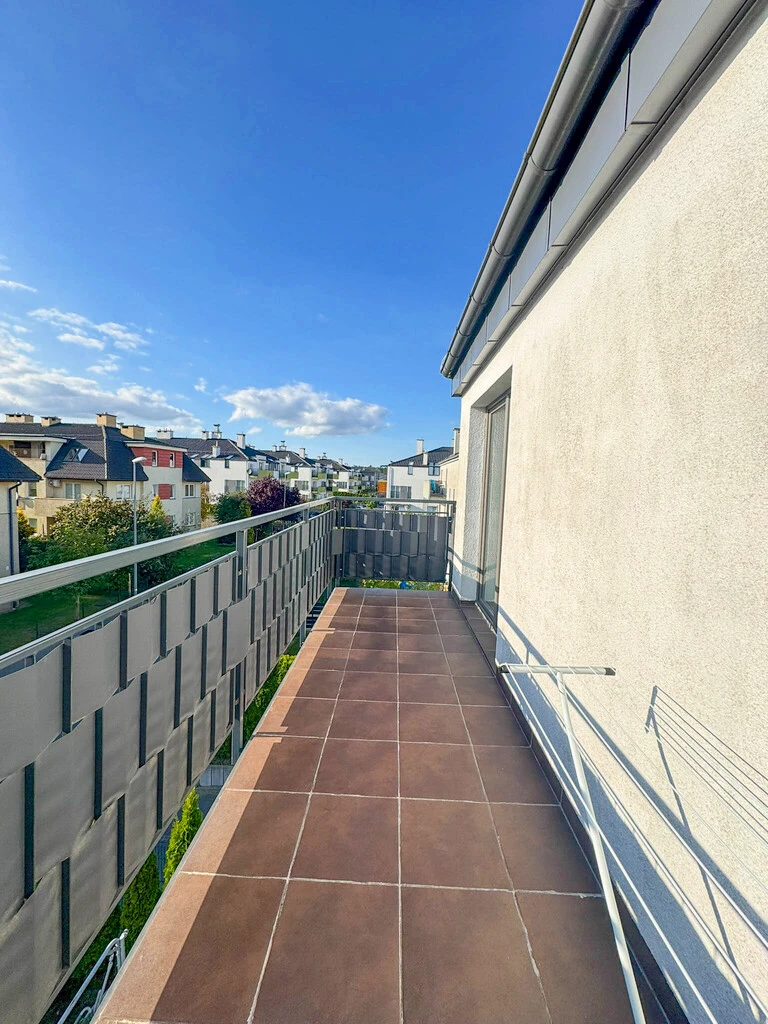 Genießen Sie die Sonne auf dem großen Balkon mit Zugang sowohl vom Wohnzimmer als auch von der Küche. Die Wohnung ist hochwertig ausgestattet, unter anderem mit Kunststofffenstern, stilvollen Bodenpaneelen und modernen Haushaltsgeräten wie Kühlschrank, Geschirrspüler, Backofen und Waschmaschine.