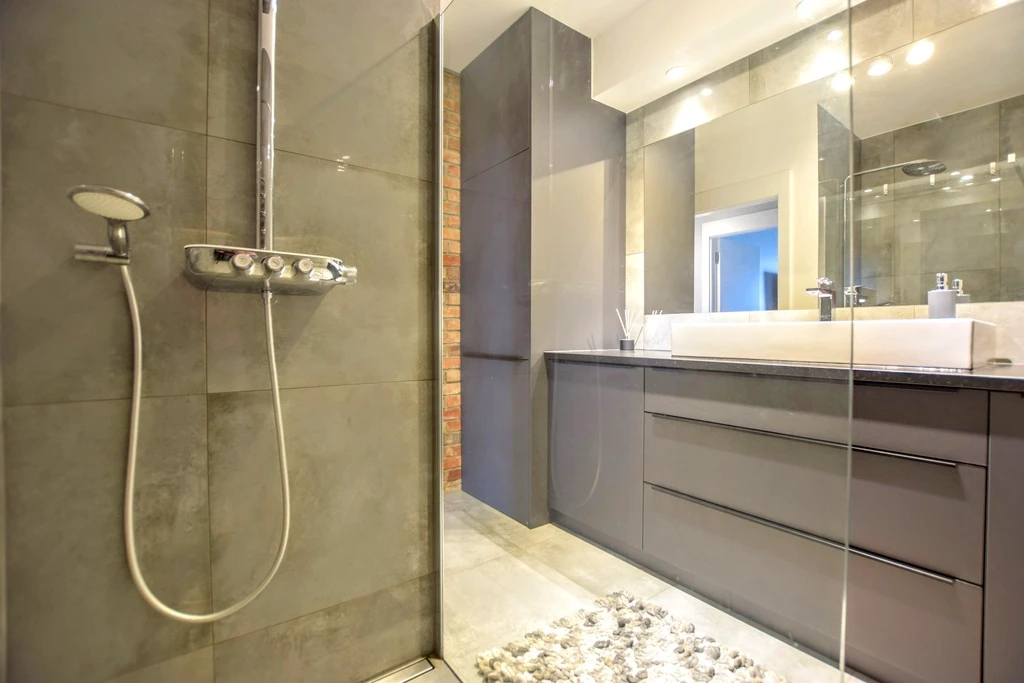 - Helles Badezimmer mit großem Duschbereich