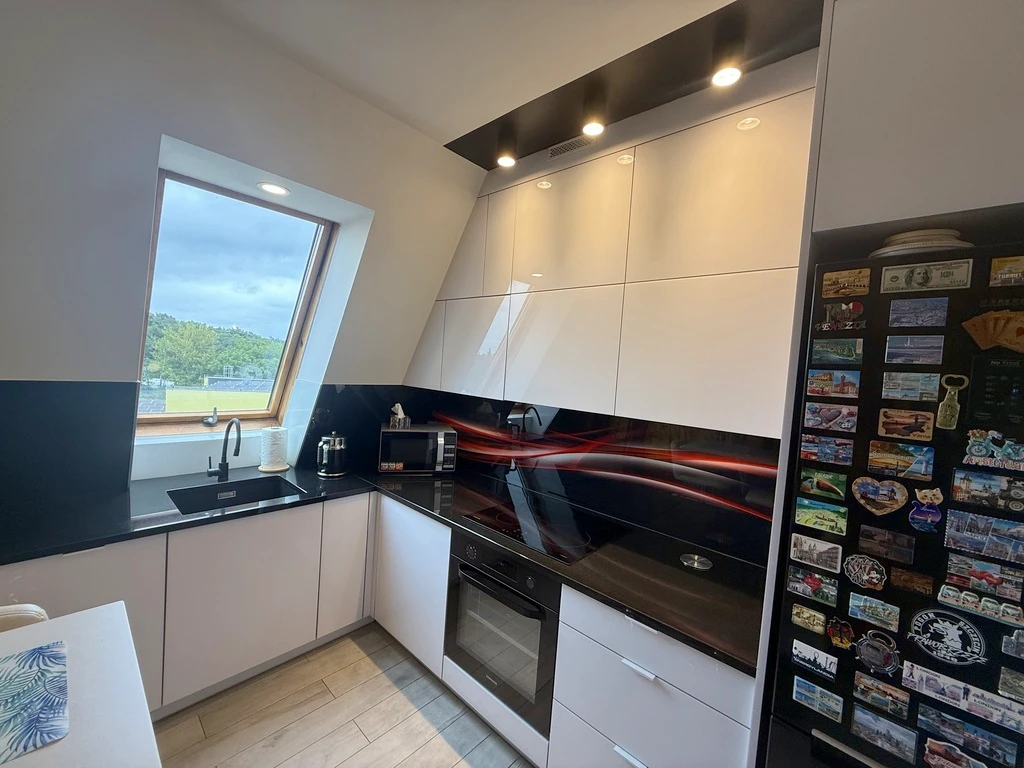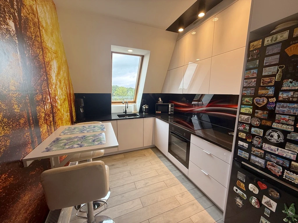 Die Wohngegend Kijewo überzeugt durch ihre ruhige Atmosphäre und gleichzeitig gute Anbindung an öffentliche Verkehrsmittel. In der Nähe befinden sich Bushaltestellen, mehrere Supermärkte, Spielplätze und weitere Einkaufsmöglichkeiten. Eine ideale Lage für Familien, Paare oder Berufstätige, die die Kombination aus Erholung und Stadtnähe schätzen.