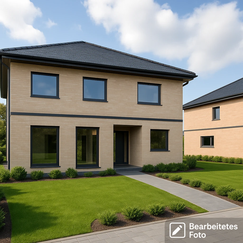 - Außenwände: 25 cm Ziegel + 15 cm Dämmung + Putz