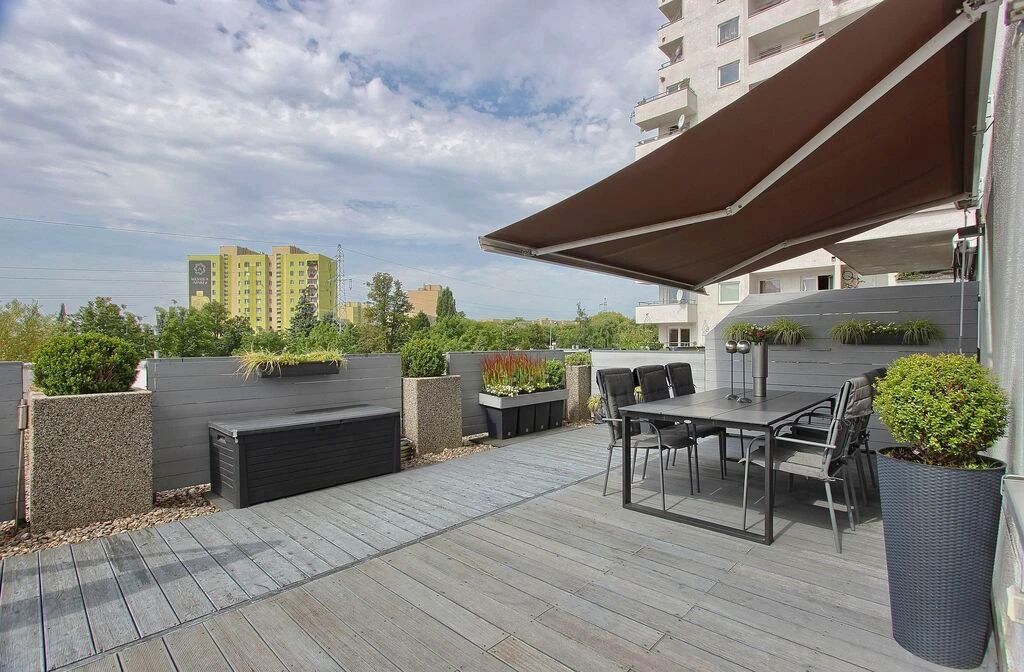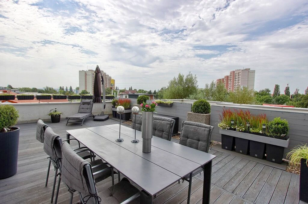Eines der absoluten Highlights dieser Wohnung ist die ca. 30 m² große, abgeschirmte Terrasse – ein grünes Refugium mitten in der Stadt, das Ihnen maximale Privatsphäre und ein Gefühl von Gartenidylle bietet.