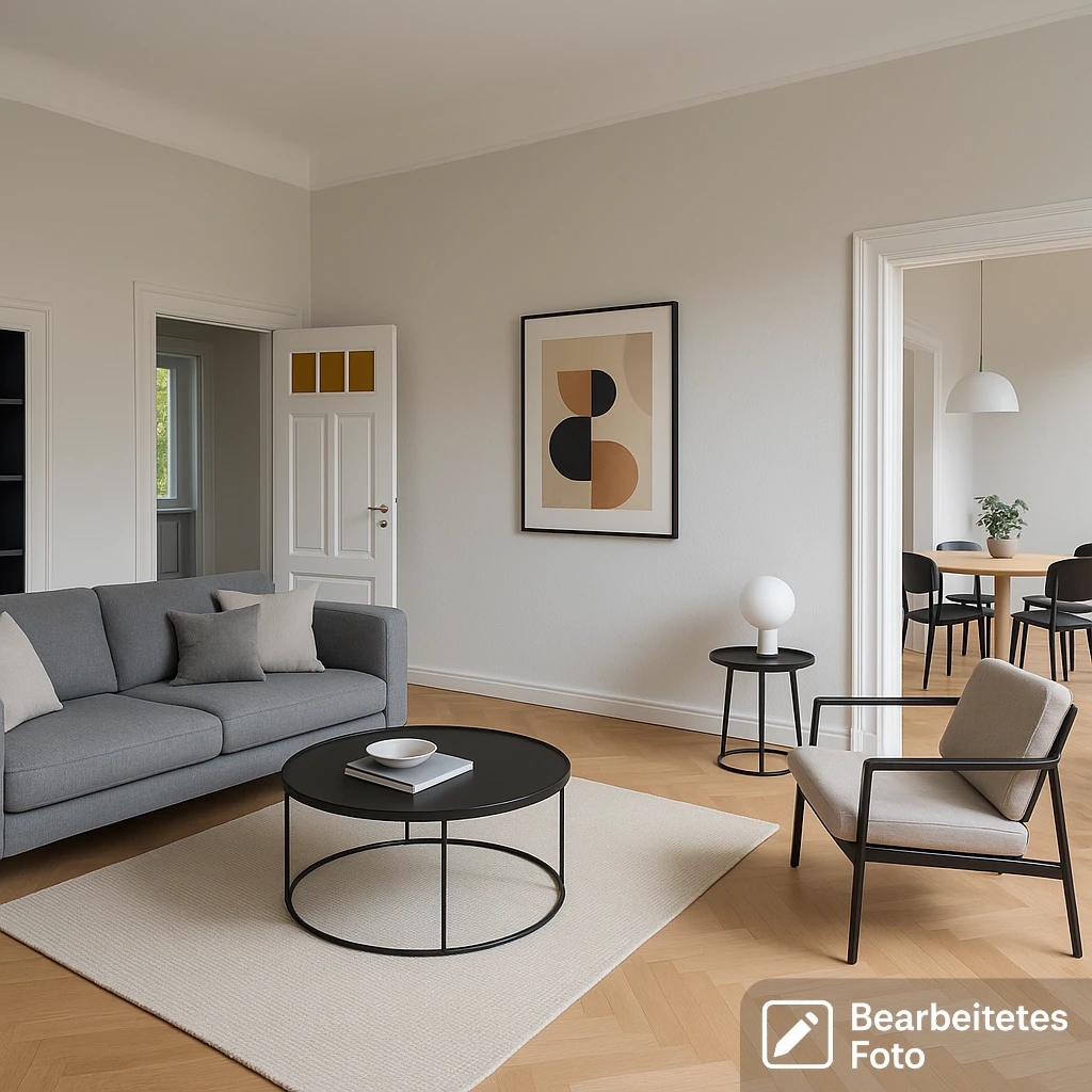 - Das erste Foto in unserer Galerie wurde leicht bearbeitet, um zu veranschaulichen, wie die Wohnung aussehen könnte – beispielsweise durch eine geänderte Wandfarbe. Die nachfolgenden Bilder zeigen den tatsächlichen Zustand der Immobilie.