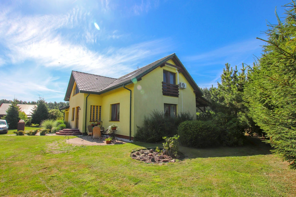 Willkommen in Brzózki – einer malerischen Ortschaft in naturnaher Umgebung mit Wäldern, Wiesen und nur ca. 1 km vom Stettiner Haff entfernt. Hier erwartet Sie ein charmantes, freistehendes Einfamilienhaus mit einer Wohnfläche von 158 m² auf einem großzügigen, liebevoll gestalteten Grundstück von 1.554 m².