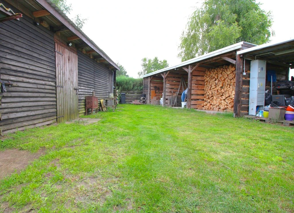 - Holzlagerplatz und praktisches Gartenhäuschen für Geräte und Werkzeuge