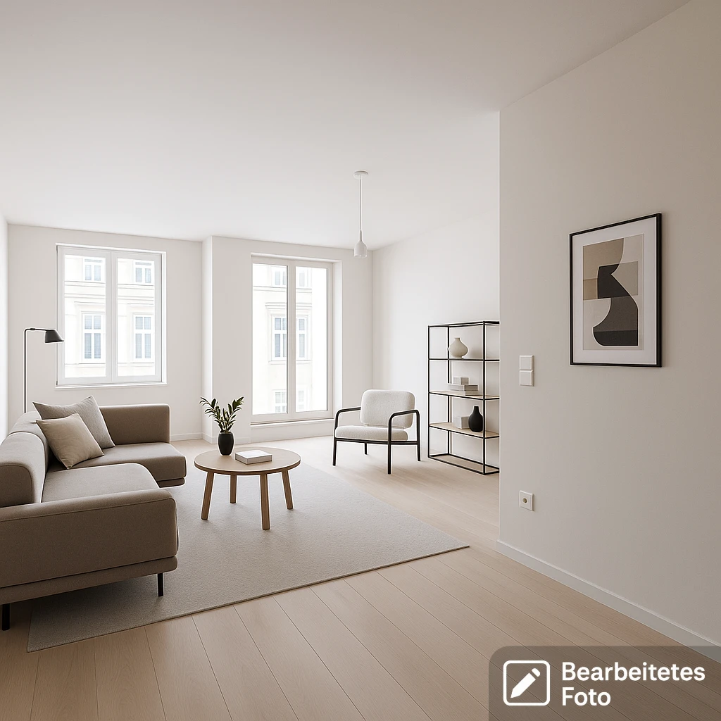 - Das erste Foto in unserer Galerie wurde leicht bearbeitet, um zu veranschaulichen, wie die Wohnung aussehen könnte – beispielsweise durch eine geänderte Wandfarbe. Die nachfolgenden Bilder zeigen den tatsächlichen Zustand der Immobilie.