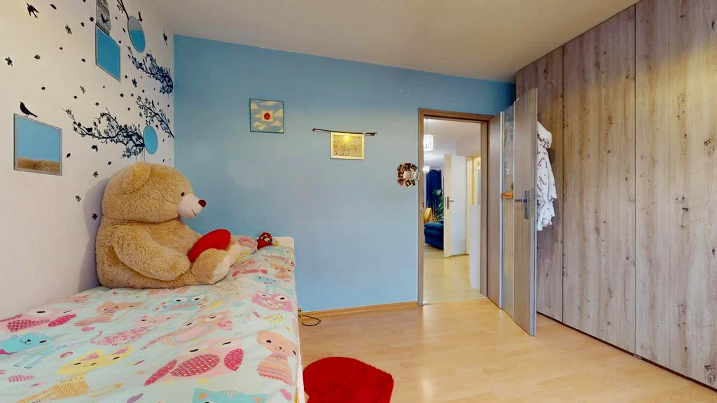 Die Wohnung ist offiziell als 3-Zimmer-Wohnung mit Küche, Flur, Badezimmer und separatem WC eingetragen, wurde jedoch von den derzeitigen Eigentümern professionell in eine 4-Zimmer-Wohnung umgestaltet. Dadurch bietet sie nun noch mehr Platz für Familienleben oder Home-Office.