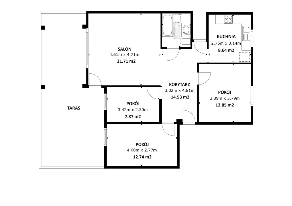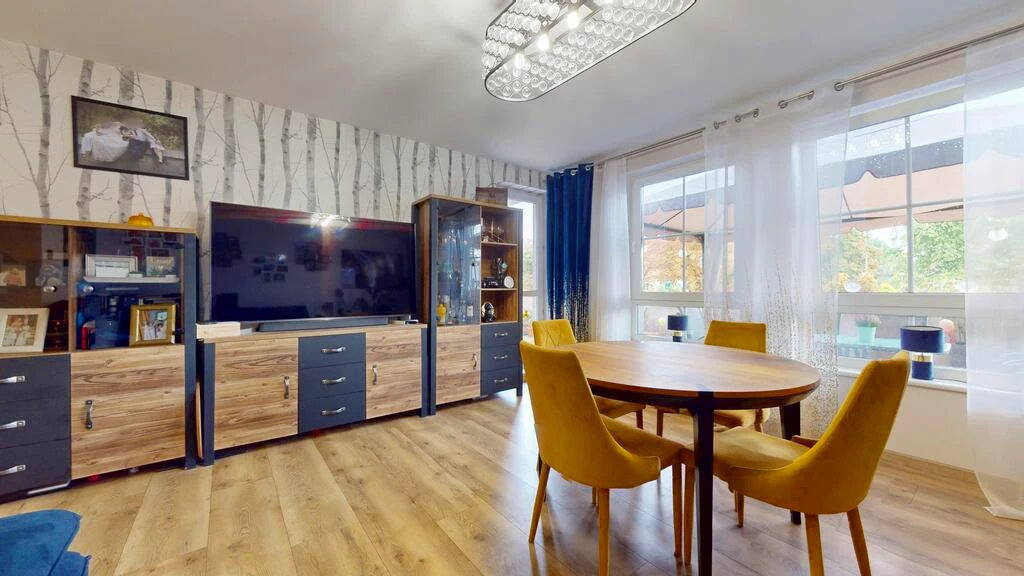Die Wohnung besteht aus: - einem geräumigen Wohnzimmer mit Zugang zum Garten, - zwei Schlafzimmern, - einer separaten Küche, - einem Badezimmer mit Badewanne, - einem Flur mit praktischem Stauraum.