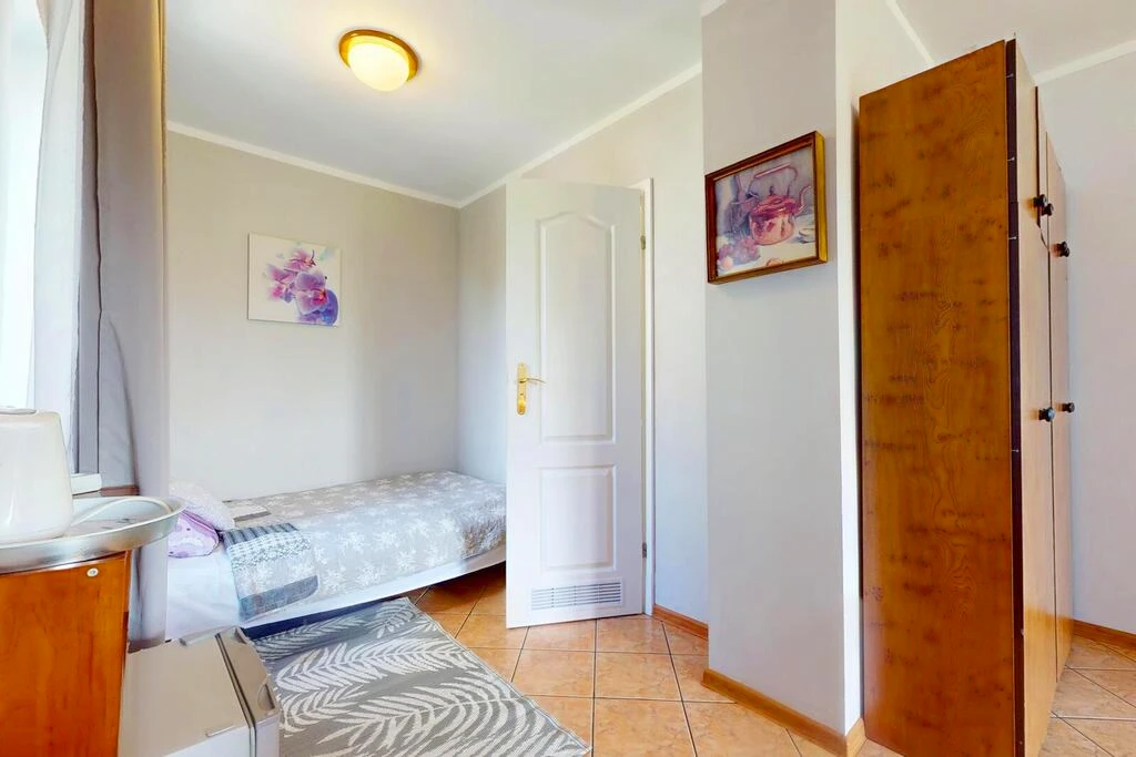 Willkommen in dieser außergewöhnlichen Immobilie mit idealer Lage in der malerischen Küstenstadt Rewal. Auf einem großzügigen Grundstück von 1.111 m² befindet sich ein freistehendes Gebäude mit einer Gesamtfläche von 450 m², das derzeit als erfolgreich geführter Pensionbetrieb genutzt wird – inklusive einer exklusiven Eigentümerwohnung mit separatem Eingang.
