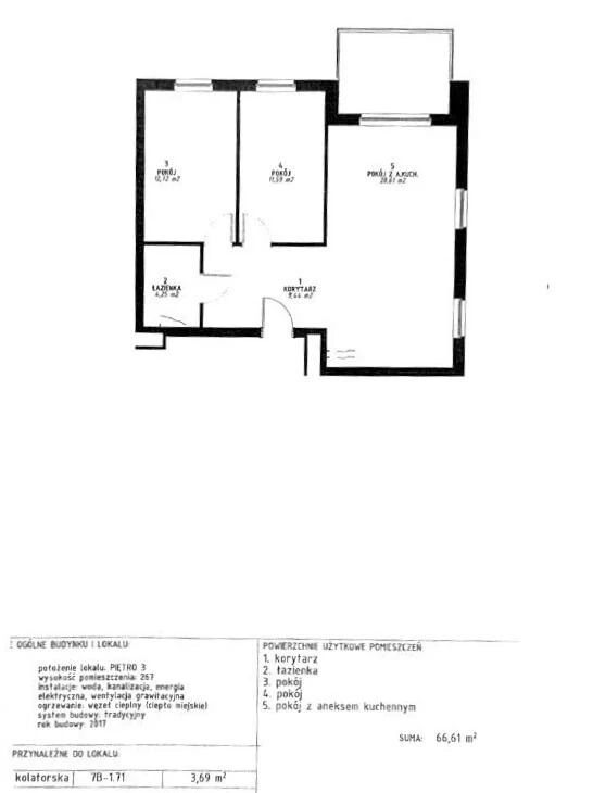 Zum Verkauf steht eine attraktive 3-Zimmer-Wohnung mit einer Gesamtfläche von 66,61 m² in einem modernen Mehrfamilienhaus aus dem Jahr 2017 im beliebten Stadtteil Gumieńce.