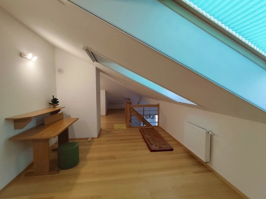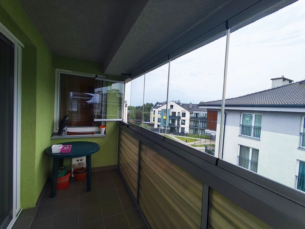 Überdachter Balkon (5,7 m²) – mit modernen, aufklappbaren Fenstern ausgestattet, schafft er eine gemütliche und windgeschützte Zone zum Entspannen im Freien.