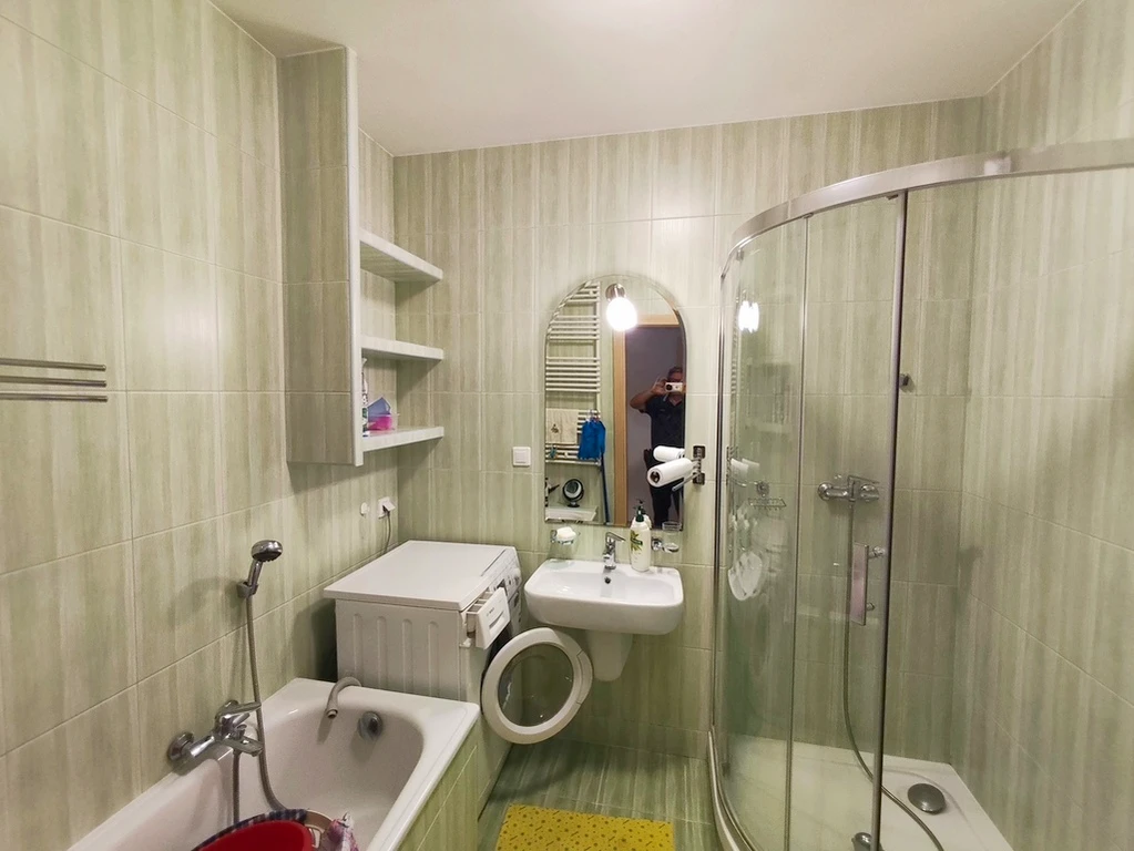 Badezimmer (4,81 m²) – komfortabel mit Dusche, Badewanne, WC, Waschbecken und Waschmaschine ausgestattet.