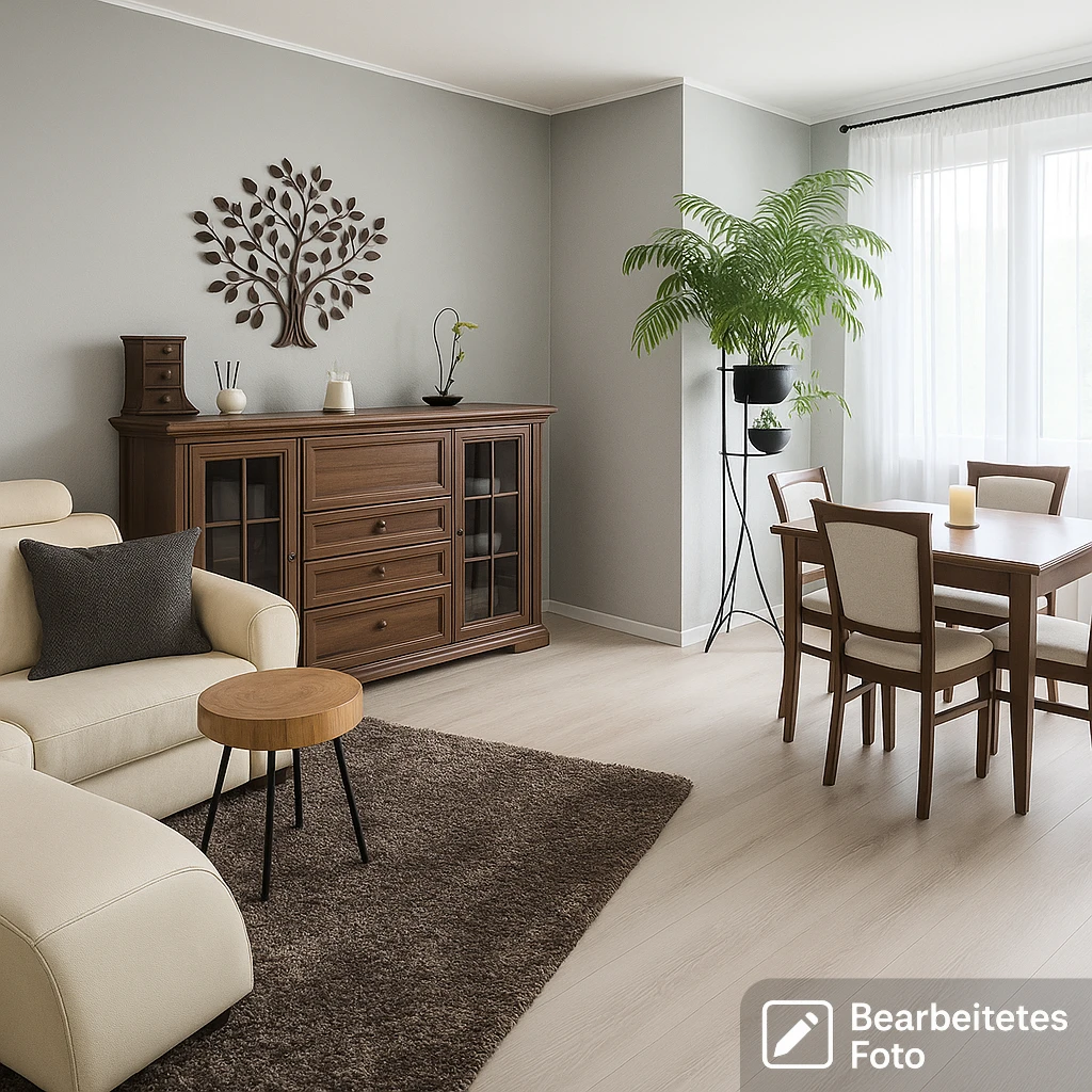 - Das erste Foto in unserer Galerie wurde leicht bearbeitet, um zu veranschaulichen, wie die Wohnung aussehen könnte – beispielsweise durch eine geänderte Wandfarbe. Die nachfolgenden Bilder zeigen den tatsächlichen Zustand der Immobilie.