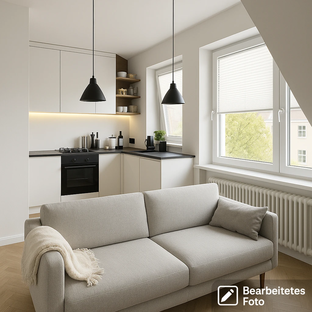 - Das erste Foto in unserer Galerie wurde leicht bearbeitet, um zu veranschaulichen, wie die Wohnung aussehen könnte – beispielsweise durch eine geänderte Wandfarbe. Die nachfolgenden Bilder zeigen den tatsächlichen Zustand der Immobilie.