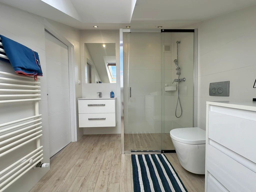 - Böden: Feinsteinzeug (Gres) und Laminatpaneele