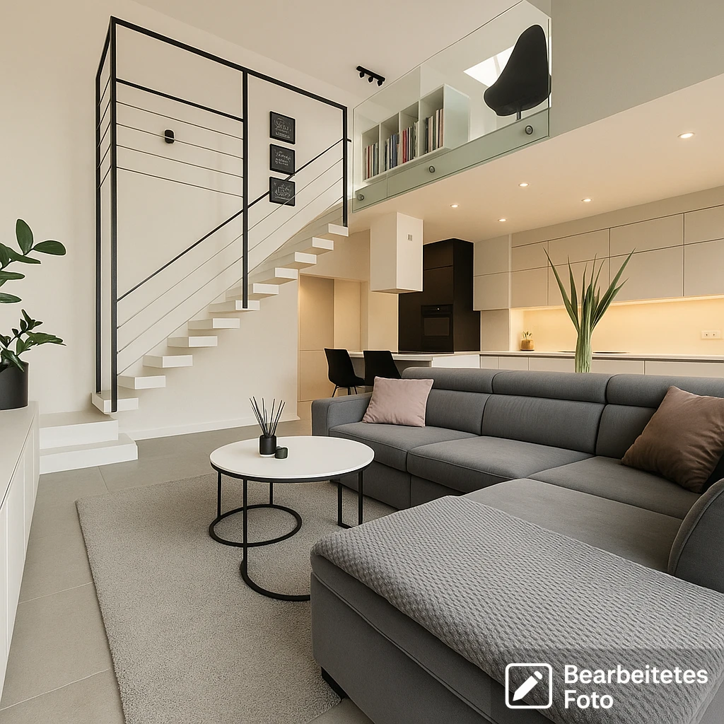 Obere Ebene (offene Galerie/Antresola): - Zusätzlicher Raum (ca. 24 m²), derzeit als offener Wohn- oder Arbeitsbereich konzipiert - Weiterer Raum mit separater Nutzungsmöglichkeit – beispielsweise als Home-Office, Gästezimmer oder Hobbyraum - Zweites Bad wurde auf der Galeriefläche vorbereitet – Anschlüsse vorhanden