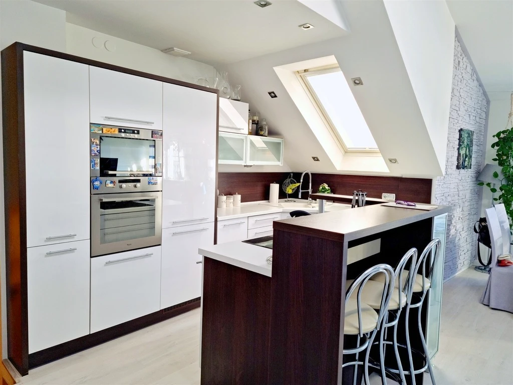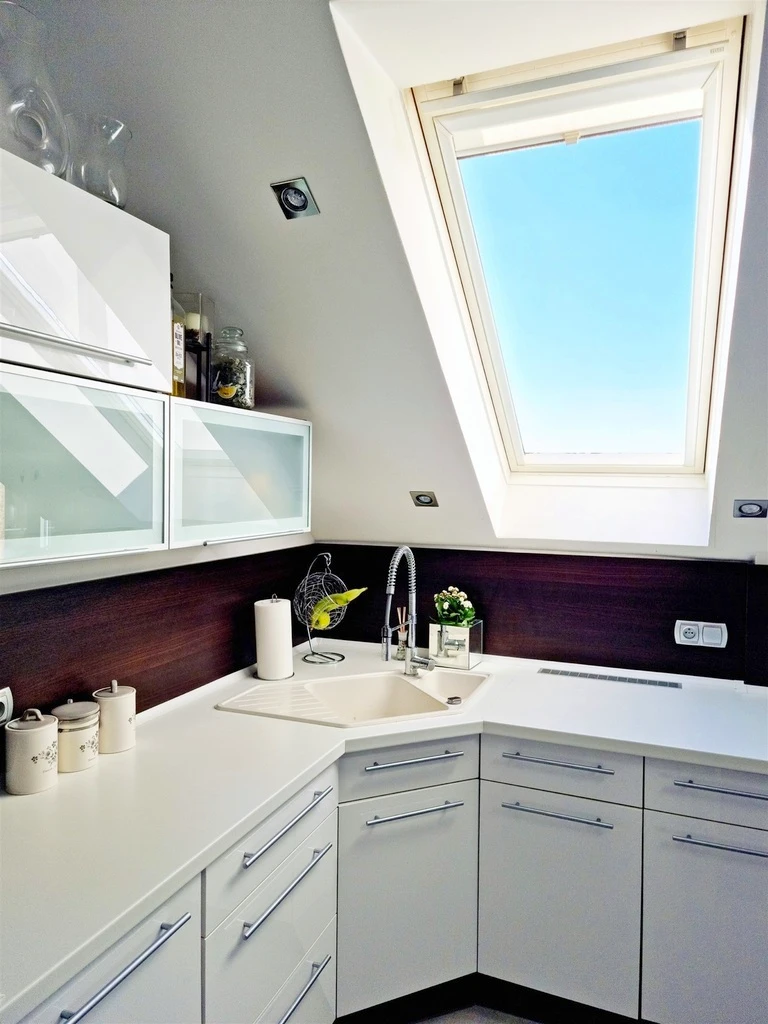 Besonders hervorzuheben ist die angenehme Atmosphäre durch die besondere Raumhöhe und die Vielzahl an Dach- und Flügelfenstern – so entsteht ein wohnliches Gefühl von Weite und Licht. Die gelungene Raumaufteilung macht die Wohnung sehr funktional und wohnlich zugleich.