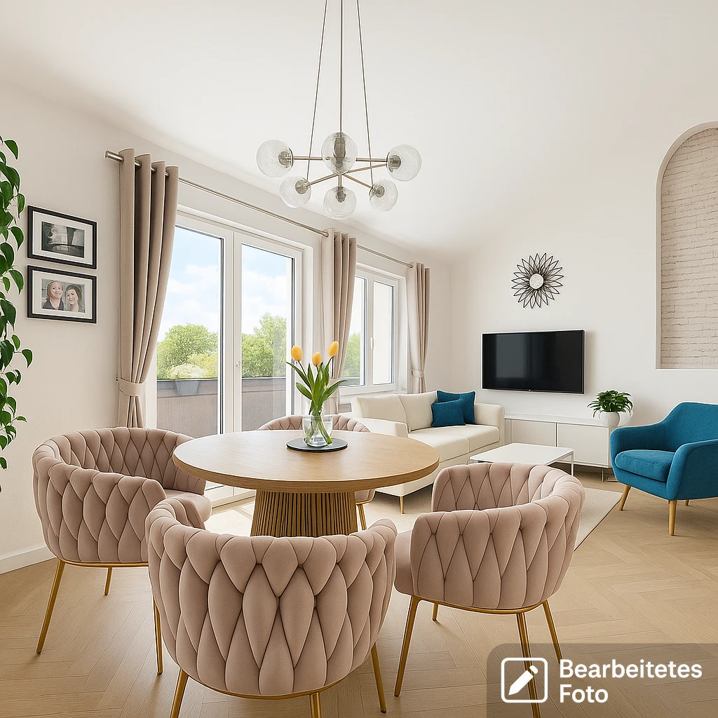 - Das erste Foto in unserer Galerie wurde leicht bearbeitet, um zu veranschaulichen, wie die Wohnung aussehen könnte – beispielsweise durch eine geänderte Wandfarbe. Die nachfolgenden Bilder zeigen den tatsächlichen Zustand der Immobilie.