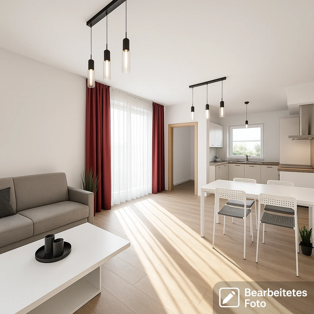 - Das erste Foto in unserer Galerie wurde leicht bearbeitet, um zu veranschaulichen, wie die Wohnung aussehen könnte – beispielsweise durch eine geänderte Wandfarbe. Die nachfolgenden Bilder zeigen den tatsächlichen Zustand der Immobilie.