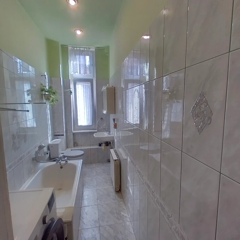 - Tageslichtbad: ca. 8 m² – mit Badewanne, gefliest, gepflegter Zustand