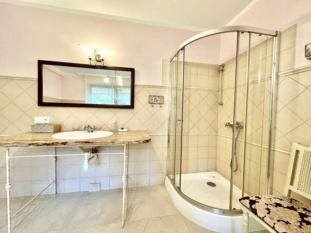 - Ausstattung: Handtuchheizkörper, Dusche, Fenster, Waschbecken, Badewanne, WC