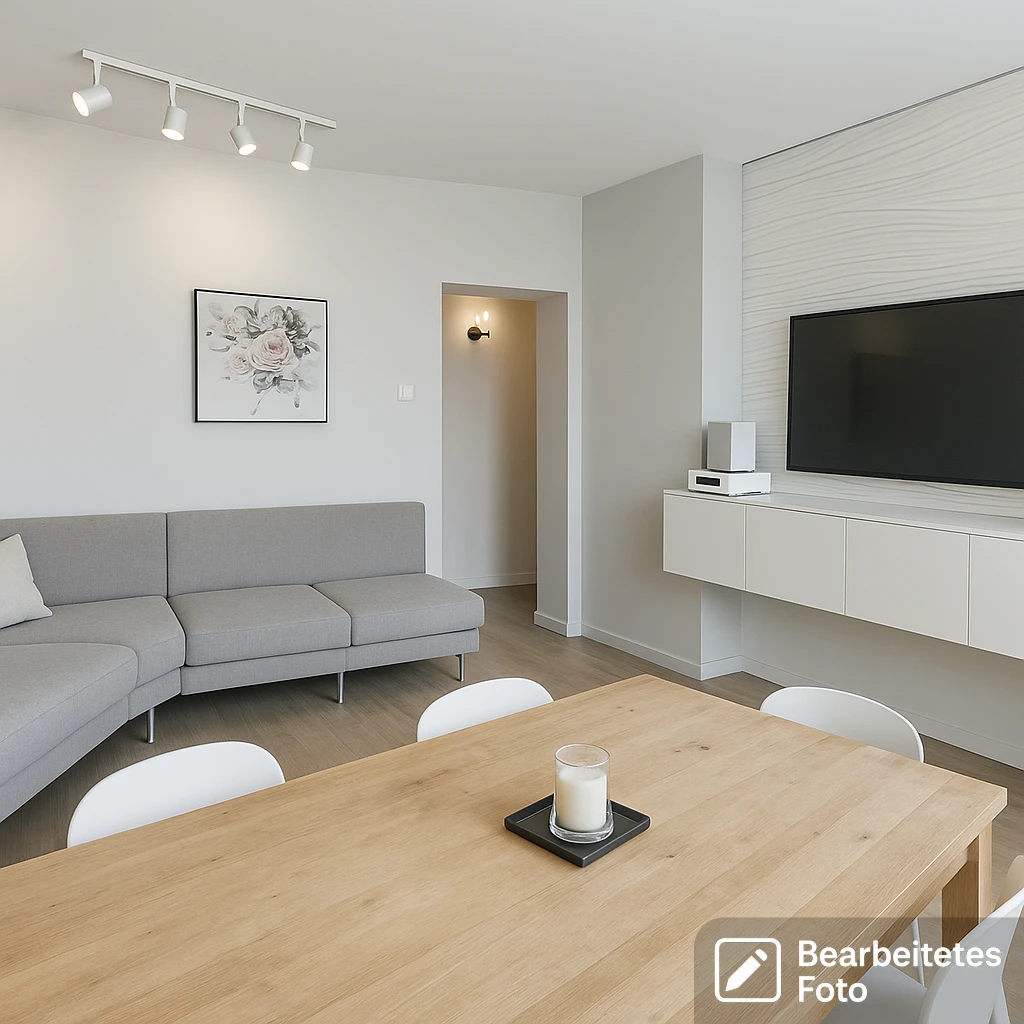 - Das erste Foto in unserer Galerie wurde leicht bearbeitet, um zu veranschaulichen, wie die Wohnung aussehen könnte – beispielsweise durch eine geänderte Wandfarbe. Die nachfolgenden Bilder zeigen den tatsächlichen Zustand der Immobilie.