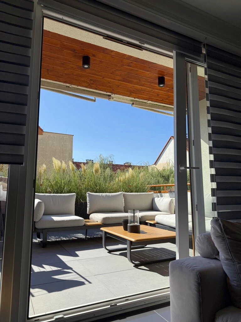 Entdecken Sie dieses außergewöhnliche und großzügige Apartment mit einer Wohnfläche von 101 m², gelegen in einem gepflegten Reihenhaus aus dem Jahr 2012 auf einem privaten, geschlossenen Wohnareal mit 24-Stunden-Sicherheitsdienst, Portier und Videoüberwachung.