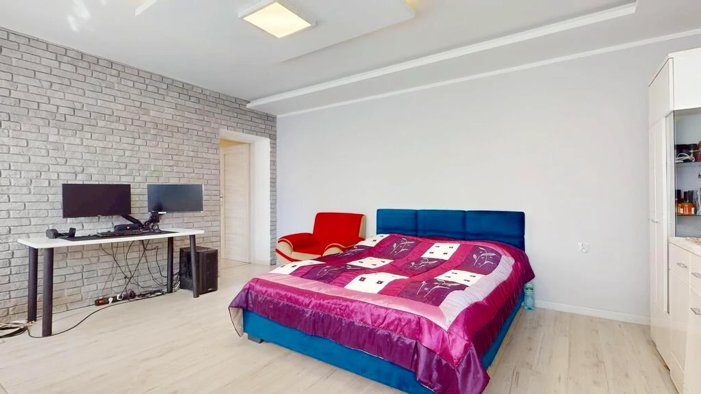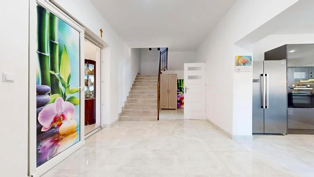 Das Innendesign des Hauses ist in hellen, freundlichen Farben gehalten – überwiegend Weiß- und Grautöne schaffen eine moderne, zeitlose Atmosphäre. Die hochwertige Gesamtausstattung und die großzügige Raumaufteilung machen dieses Haus zu einer hervorragenden Wahl für Familien oder alle, die viel Platz zum Leben und Arbeiten wünschen.
