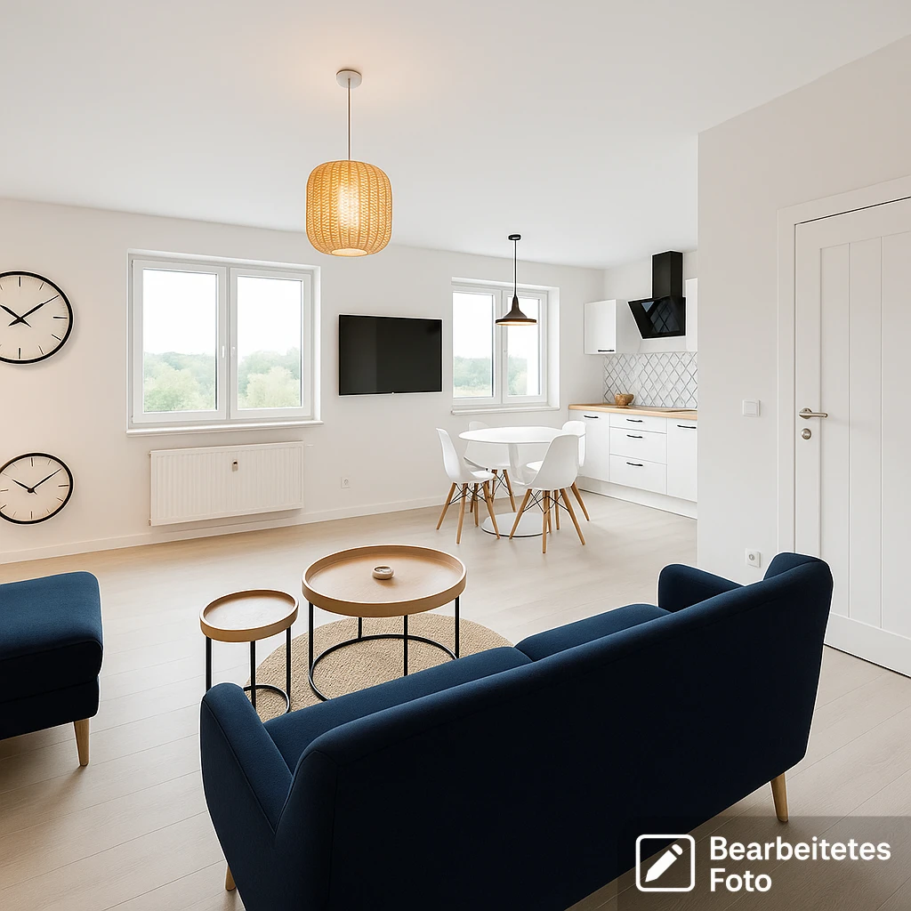 Die Wohnung besteht aus einem offen gestalteten Wohn- und Essbereich mit integrierter Küchenzeile, einem separaten Schlafzimmer sowie einem Badezimmer. Sämtliche Möbel, Haushaltsgeräte, Waschmaschine, Fernseher sowie Besteck, Handtücher und dekorative Elemente sind bereits im Preis enthalten – ein Rundum-sorglos-Paket!