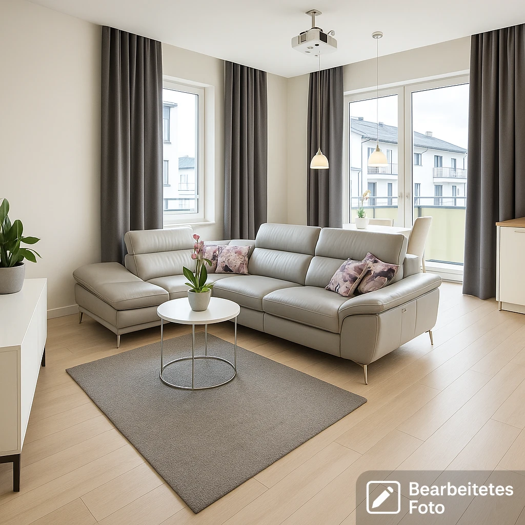 - Das erste Foto in unserer Galerie wurde leicht bearbeitet, um zu veranschaulichen, wie die Wohnung aussehen könnte – beispielsweise durch eine geänderte Wandfarbe. Die nachfolgenden Bilder zeigen den tatsächlichen Zustand der Immobilie.