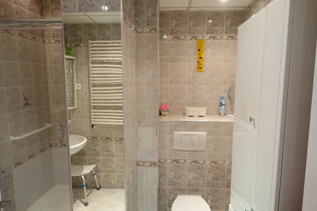 - Badezimmer: 5 m² mit Dusche, Waschbecken, WC und Waschmaschine
