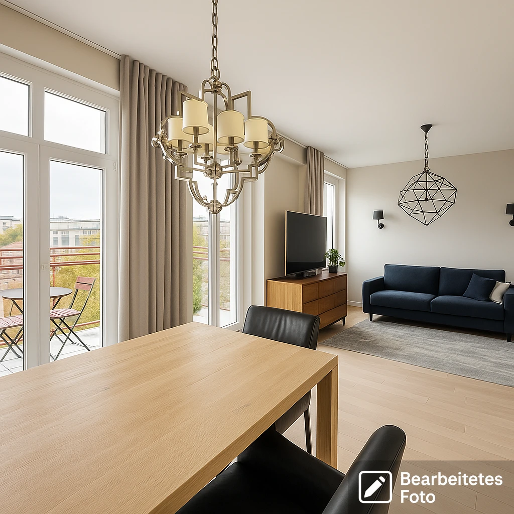 - Geräumiges Wohnzimmer mit offener Küche – ca. 30 m² mit Zugang zu einem sonnigen Balkon in südwestlicher Ausrichtung – ideal zum Entspannen am Nachmittag.