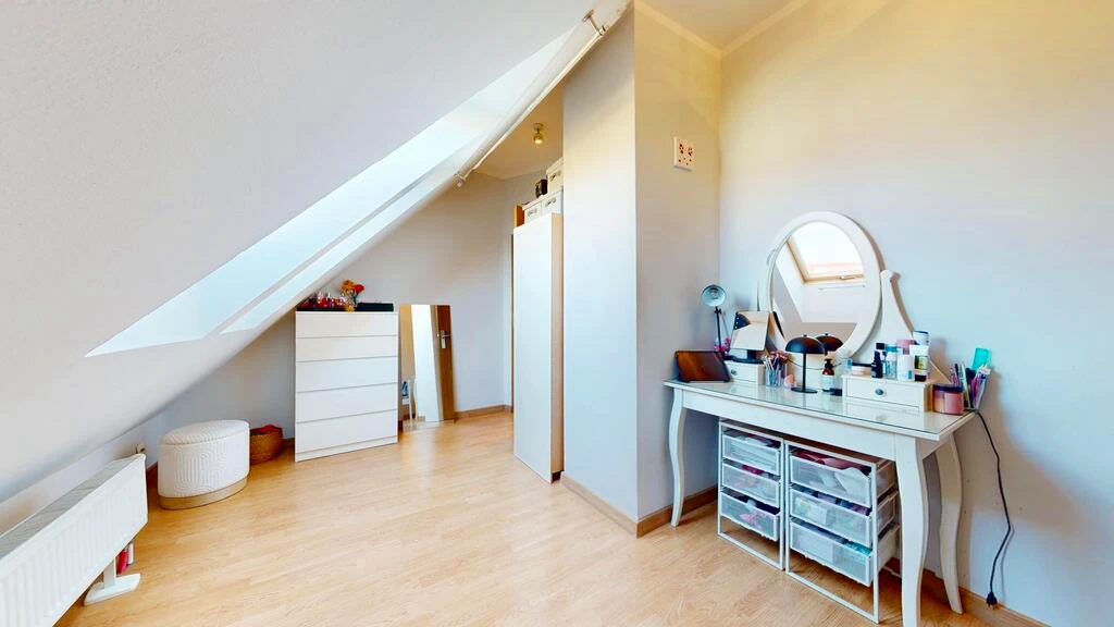 Das Obergeschoss umfasst die privaten Rückzugsräume sowie ein zusätzliches Badezimmer. Eine separate Ankleide sorgt für zusätzliche Ordnung und Komfort.