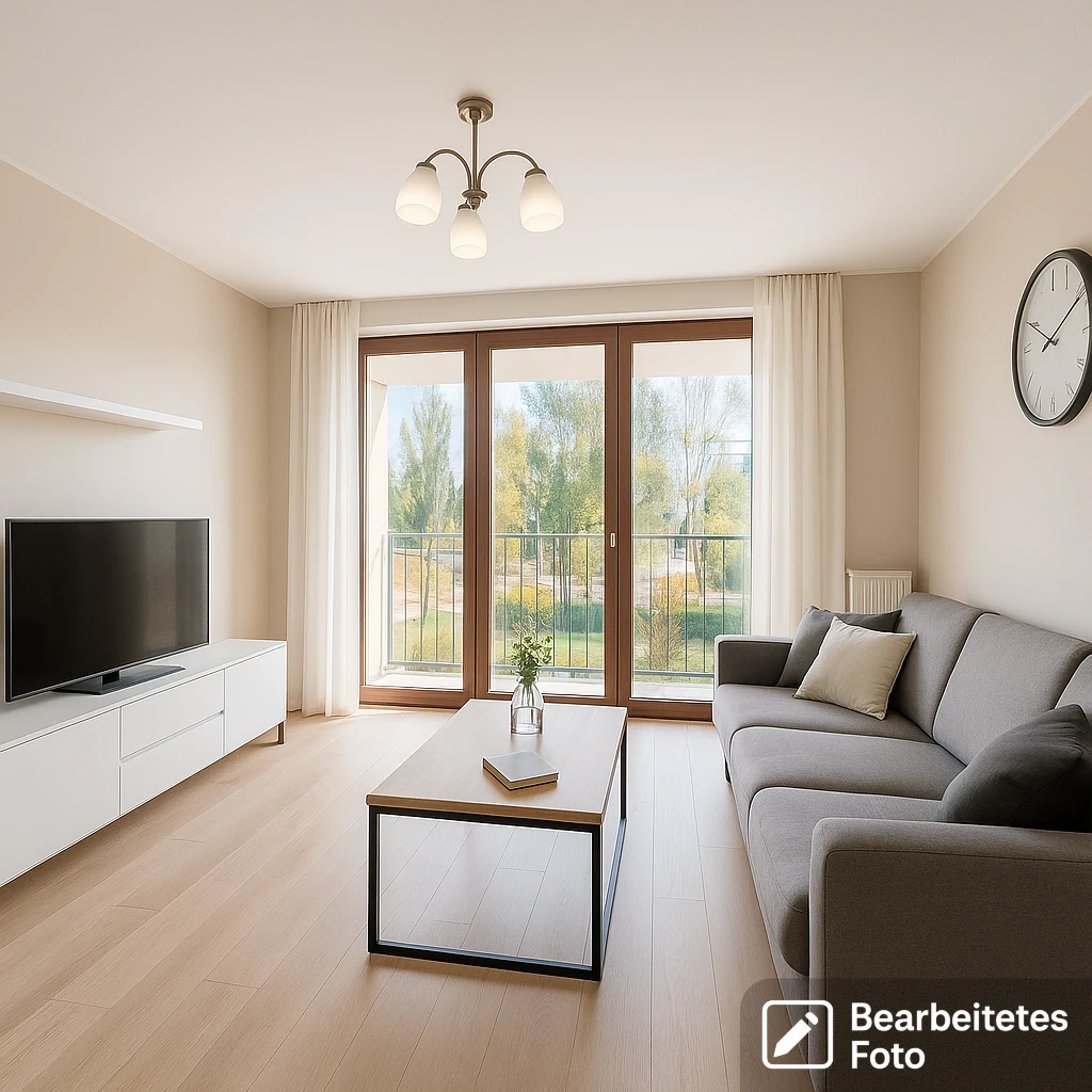 - Das erste Foto in unserer Galerie wurde leicht bearbeitet, um zu veranschaulichen, wie die Wohnung aussehen könnte – beispielsweise durch eine geänderte Wandfarbe. Die nachfolgenden Bilder zeigen den tatsächlichen Zustand der Immobilie.