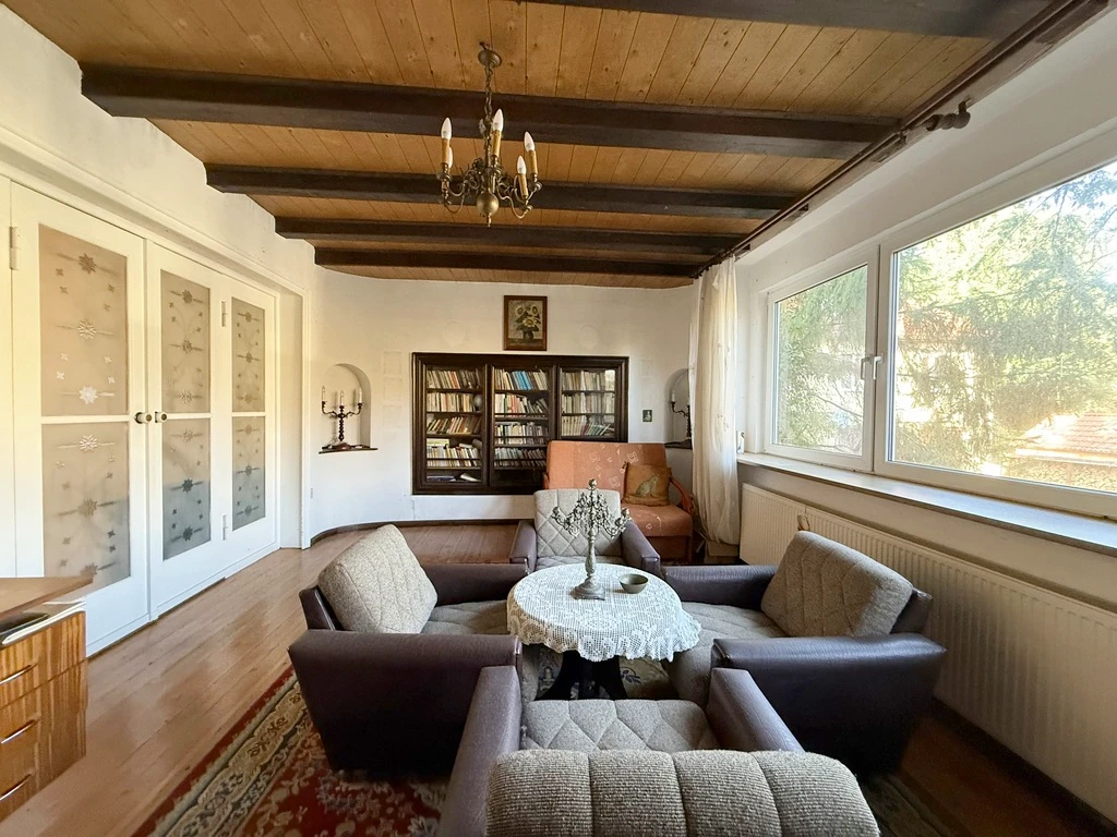 - Erdgeschoss: Zwei großzügige Zimmer (eins mit Erker), separate Küche, Badezimmer, Garderobe, Eingangsbereich sowie eine geschlossene Veranda