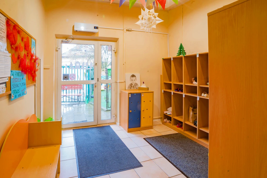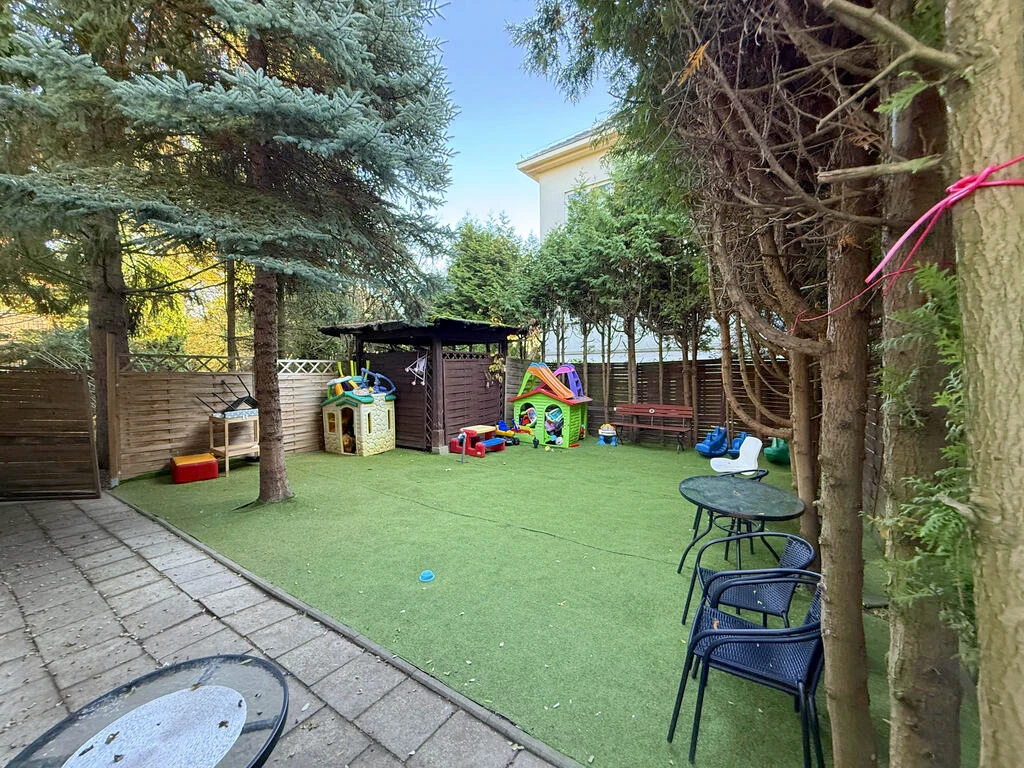 Zusätzlich verfügt die Immobilie über einen unabhängigen Anbau mit separatem Eingang und eigener Adresse, der derzeit als Kindergarten genutzt wird. Dieser Bereich (ca. 111 m²) besteht aus einem großzügigen Raum, zwei weiteren Zimmern, zwei Bädern, Küche und Flur – ideal für eine gewerbliche Nutzung oder als separate Wohneinheit.