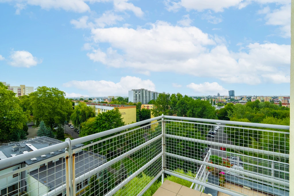 Große Terrasse (15,4 m²) – mit herrlichem Blick über die Dächer von Szczecin. Perfekt für den ersten Kaffee am Morgen oder entspannte Abende mit Freunden.