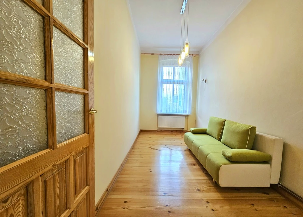 Das Gebäude wurde aufwändig saniert und besticht durch seine historische Fassade und einen gepflegten Allgemeinzustand. Aus den Fenstern genießen Sie einen herrlichen Blick auf den Plac Zgody – ein belebter, grüner Stadtplatz, zentral gelegen an der Allee Wojska Polskiego, die nach ihrer Revitalisierung zu einem eleganten Flanierboulevard mit zahlreichen Cafés, Restaurants und Geschäften geworden ist.