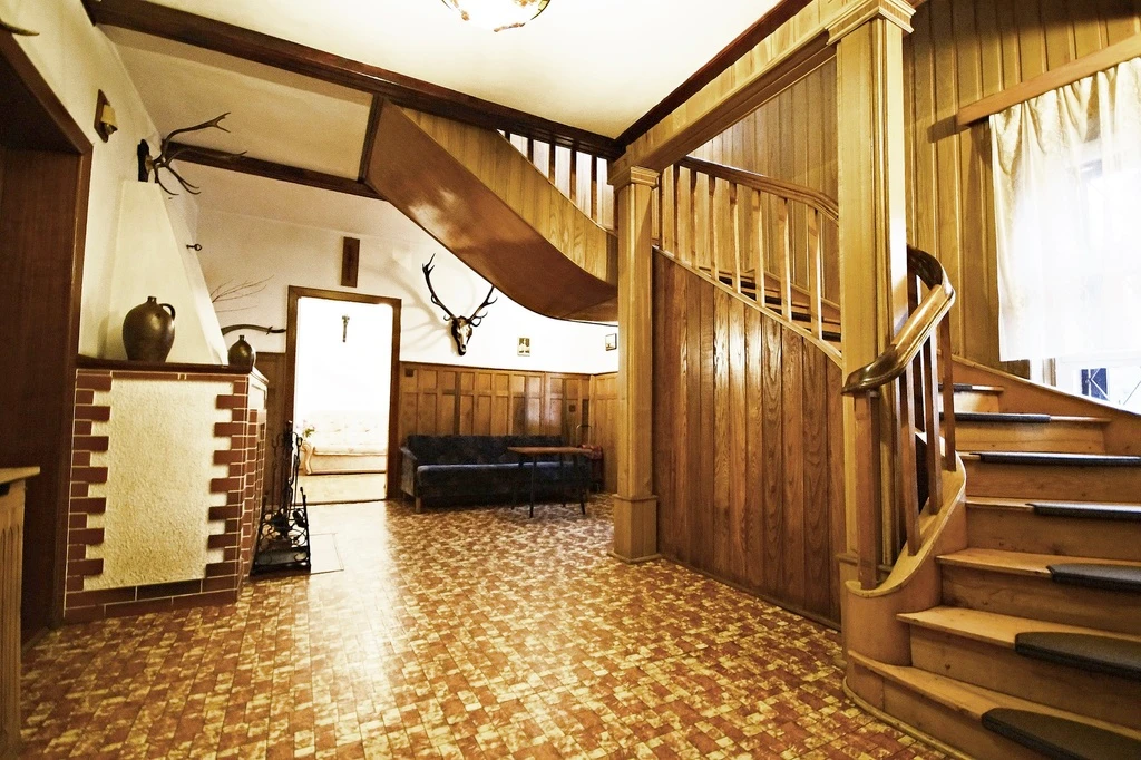 Diese beeindruckende Villa aus der Vorkriegszeit bietet auf ca. 350 m² Gesamtfläche ein enormes Potenzial für verschiedene Nutzungsmöglichkeiten – ideal für den Umbau in ein charmantes Gästehaus, einen kleinen Hotelbetrieb oder großzügiges Wohnen mit historischem Flair.