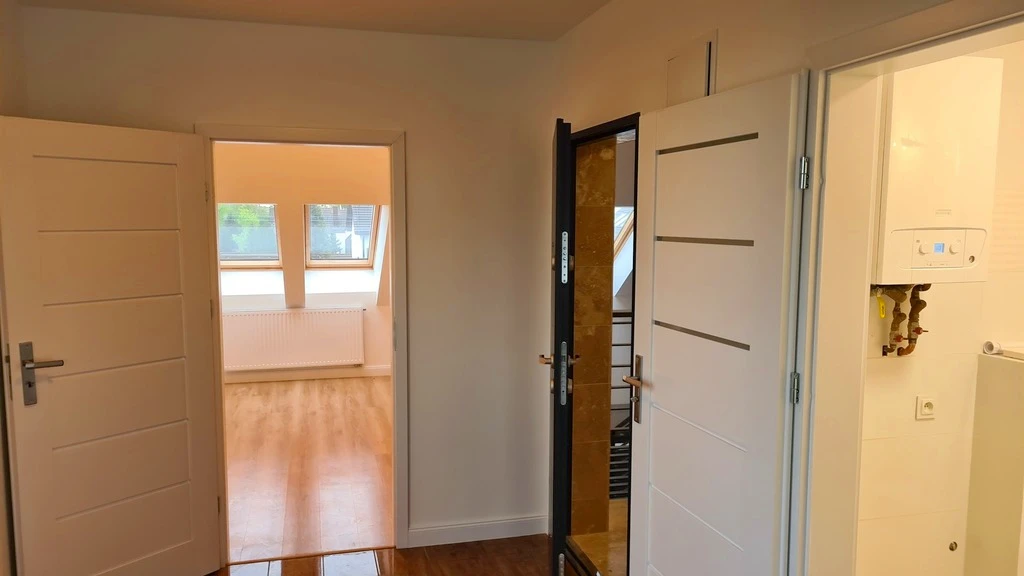 Die Wohnung befindet sich in einer ruhigen, gepflegten Wohngegend in Krzekowo, in einem geschlossenen und überwachten Wohnareal. Die Umgebung ist geprägt von Einfamilienhäusern, Doppelhaushälften und Reihenhäusern – ohne große Wohnblocks oder Hochhäuser in unmittelbarer Nähe. Das sorgt für ein angenehmes, familiäres Ambiente sowie hohe Lebensqualität.