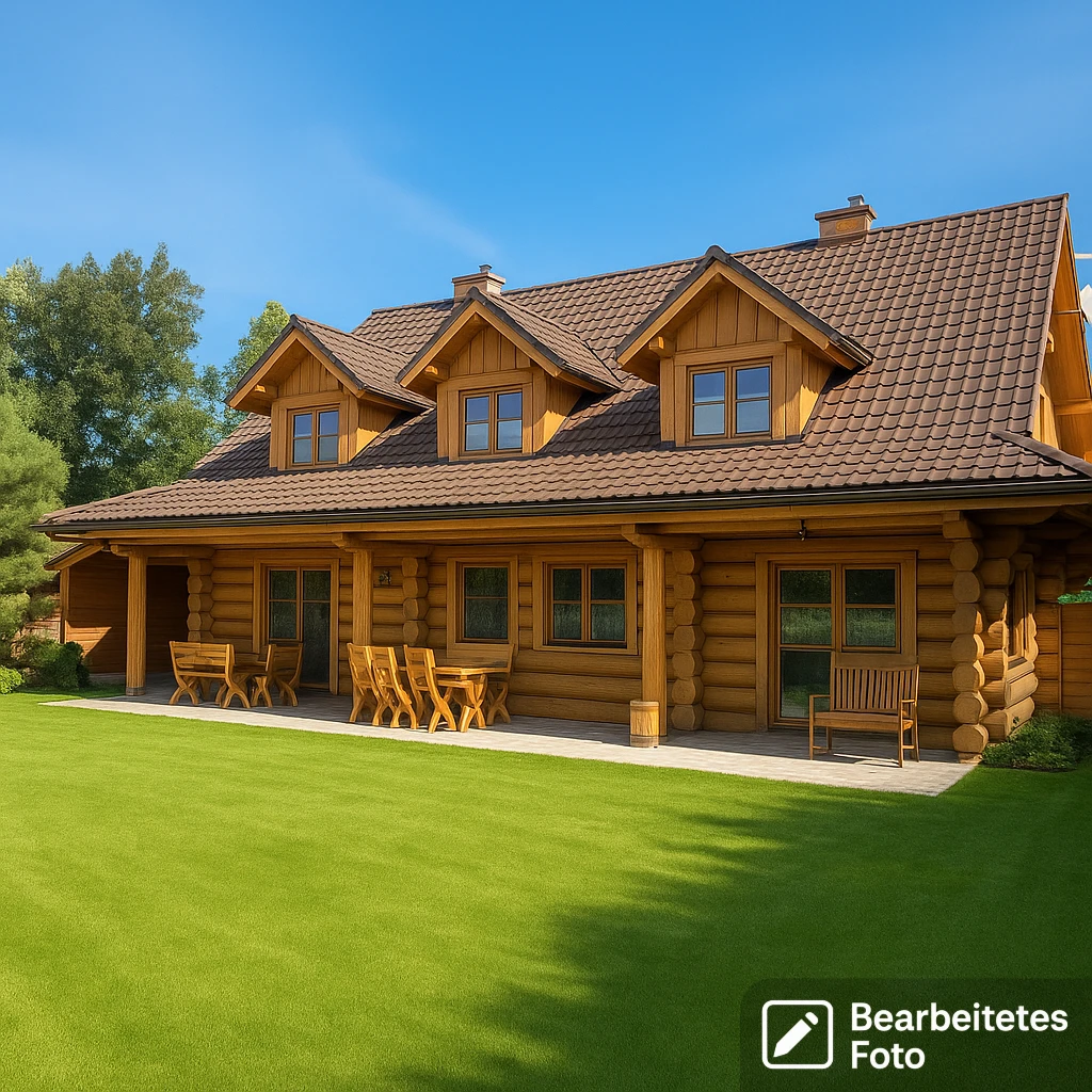 Das gesamte Grundstück hat eine großzügige Fläche von 1.797 m² und ist komplett umzäunt. Auf dem Gelände befindet sich ein charmantes Haupthaus aus Holz (Baujahr 2014), gedeckt mit klassischer Tonziegel-Dacheindeckung, sowie acht eigenständige Holzchalets: