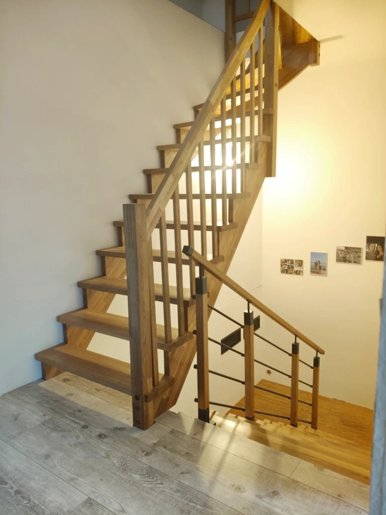 Obergeschoss - Drei gemütliche Schlafzimmer - Modernes Badezimmer mit Fenster, stilvoller Keramik und Fliesen - Hochwertig ausgebaute Holztreppe
