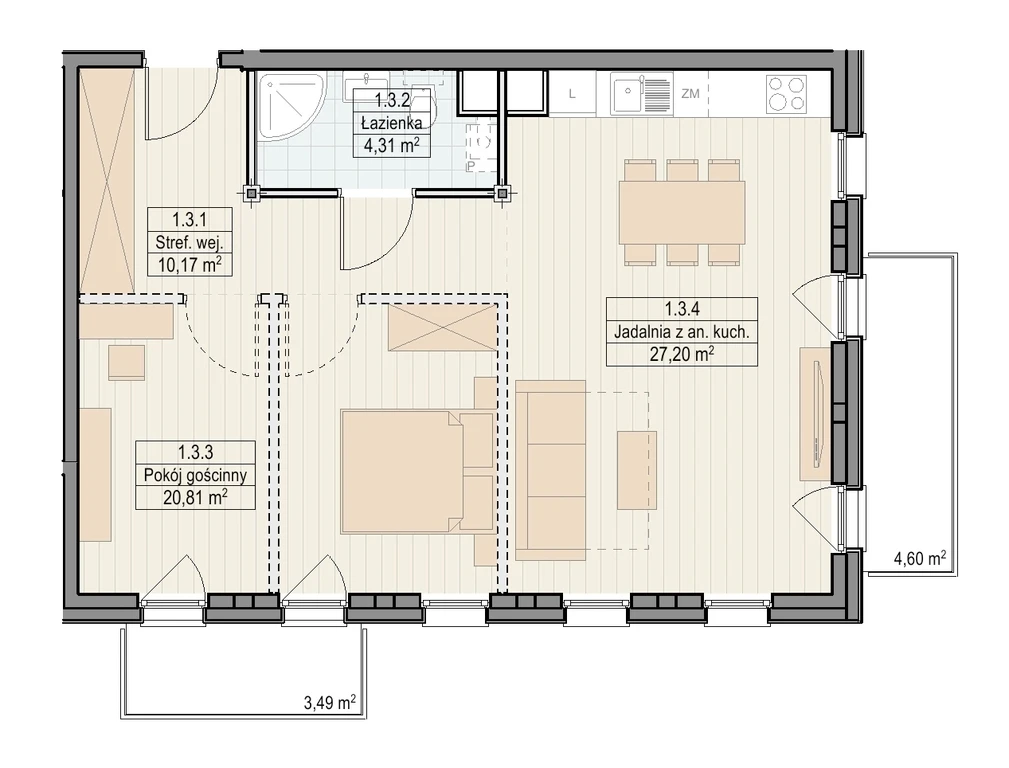 Gesamtfläche: 62,49 m²