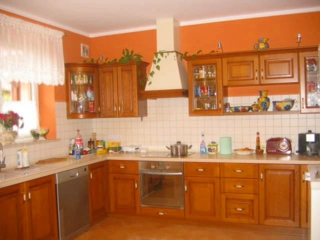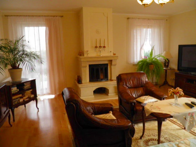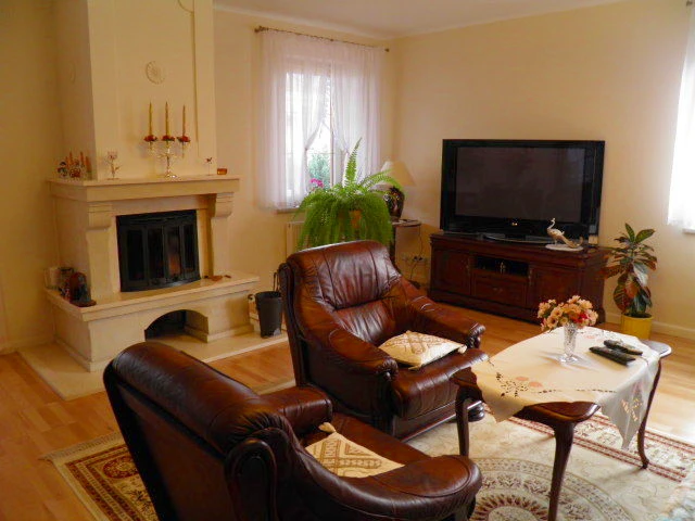 Das Haus erstreckt sich über eine Wohnebene und überzeugt durch eine durchdachte und funktionale Raumaufteilung. Der offene Wohnbereich besteht aus einer separaten Küche, die sich harmonisch mit dem Essbereich und dem Wohnzimmer verbindet – mit einer Gesamtfläche von ca. 44 m². Die maßgefertigte Einbauküche aus massivem Holz ist im Kaufpreis enthalten. Der Wohnraum verfügt über einen gemütlichen Kamin und Zugang zur großzügigen Terrasse – ideal für entspannte Stunden im Freien.