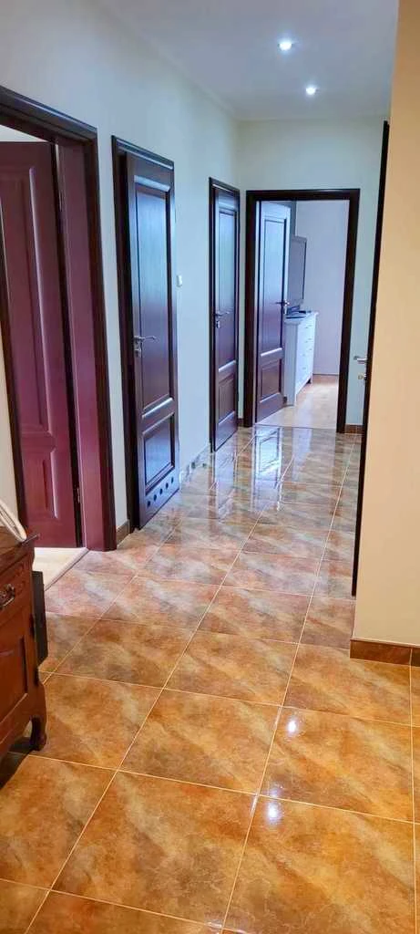 Das Tageslichtbad ist modern gefliest und ausgestattet mit einer Badewanne und einem Bidet. Ein zusätzliches, separates WC – ebenfalls neu gefliest – bietet weiteren Komfort. Ein praktischer Abstellraum sowie ein begehbarer Kleiderschrank mit etwa 5 m² Fläche runden das Raumangebot ab.