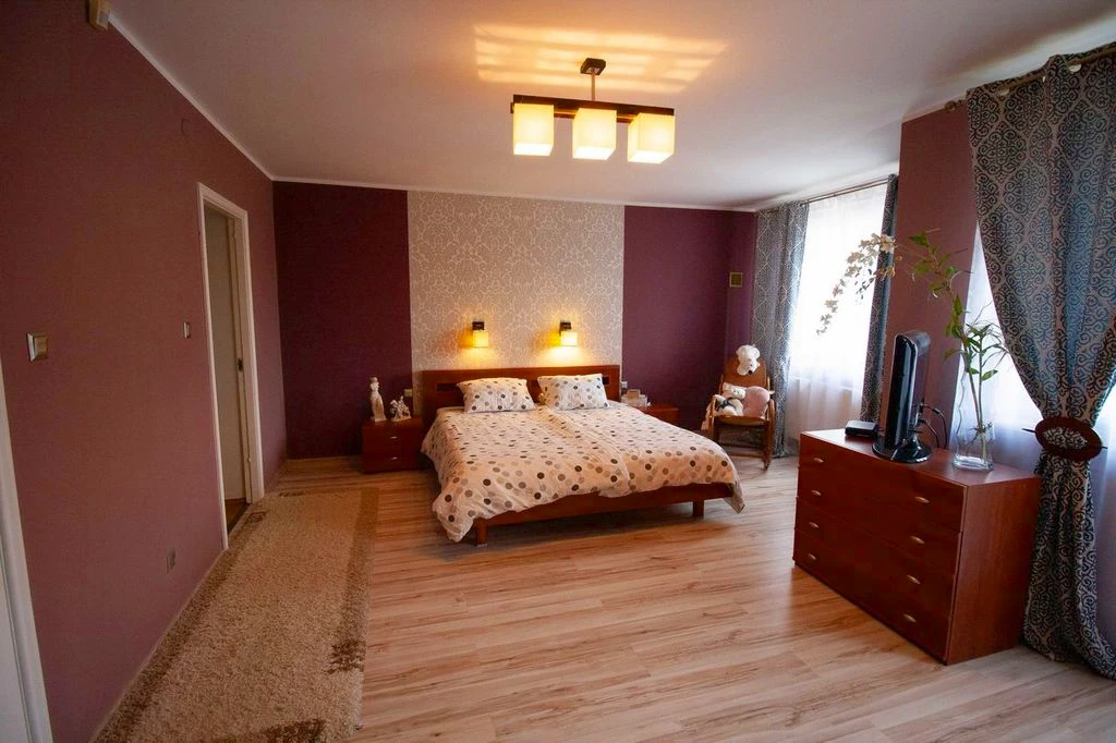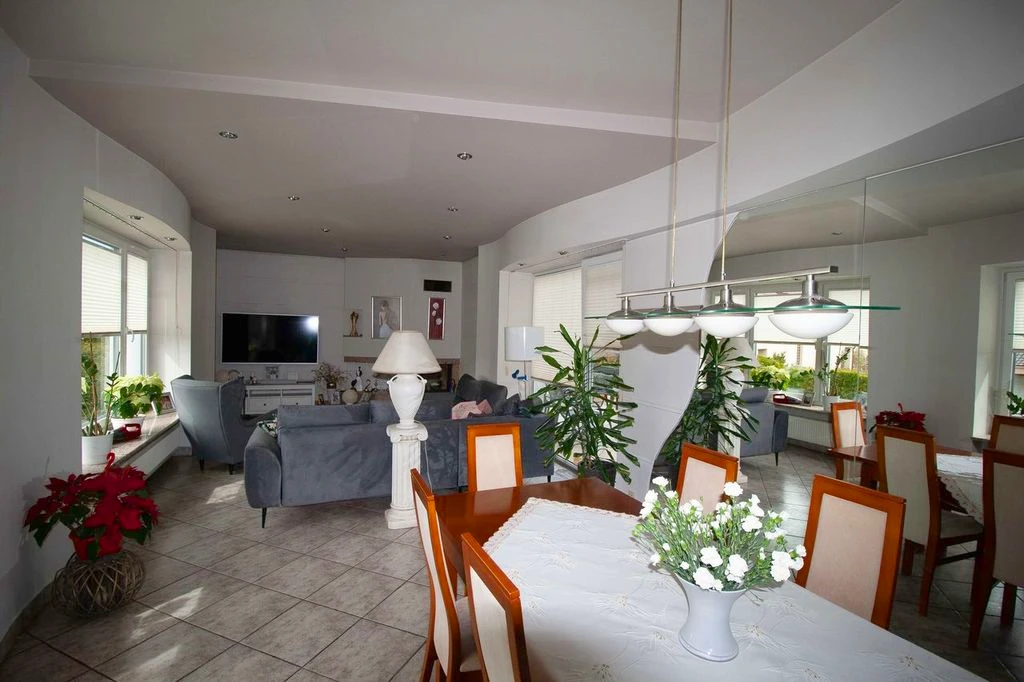 Dieses großzügige, gepflegte Doppelhaus mit ca. 367,4 m² Gesamtfläche befindet sich in einer ruhigen Wohngegend von Pilchowo, nur ca. 2 km vom beliebten Głębokie-See entfernt. Die Lage bietet eine exzellente Anbindung an das Zentrum von Szczecin und ist ideal für Familien, die Naturnähe mit guter Urbanität verbinden möchten.