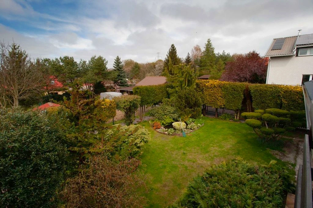 Das rechteckige Grundstück misst nominal 399 m² und wurde liebevoll um etwa 150 m² erweitert. Der Garten ist mit zahlreichen Büschen und Bäumen attraktiv bepflanzt – die grüne Wohlfühloase bietet viel Platz für Entspannung und Freizeit. Vom Wohnzimmer aus gelangen Sie direkt auf eine großzügige 10 m² große Terrasse mit Zugang zum Garten.